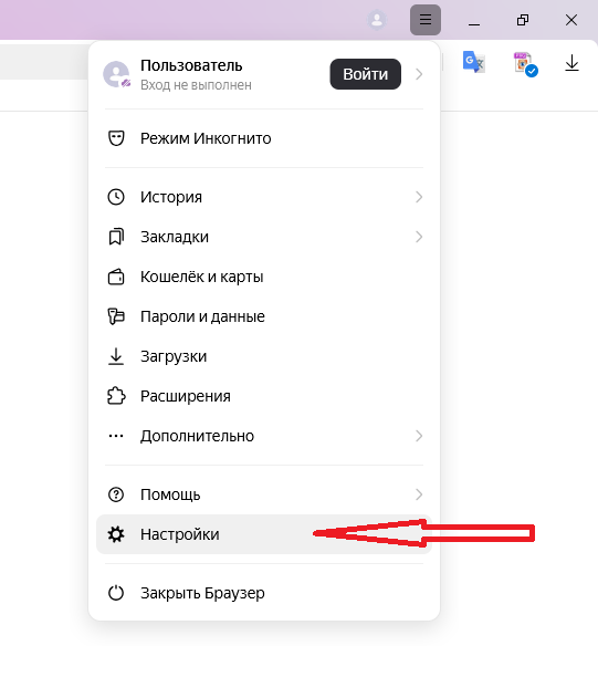 Выберите пункт "Настройки":