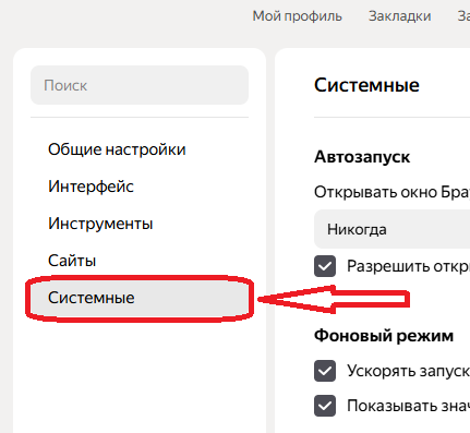 В блоке слева выберите пункт "Системные":